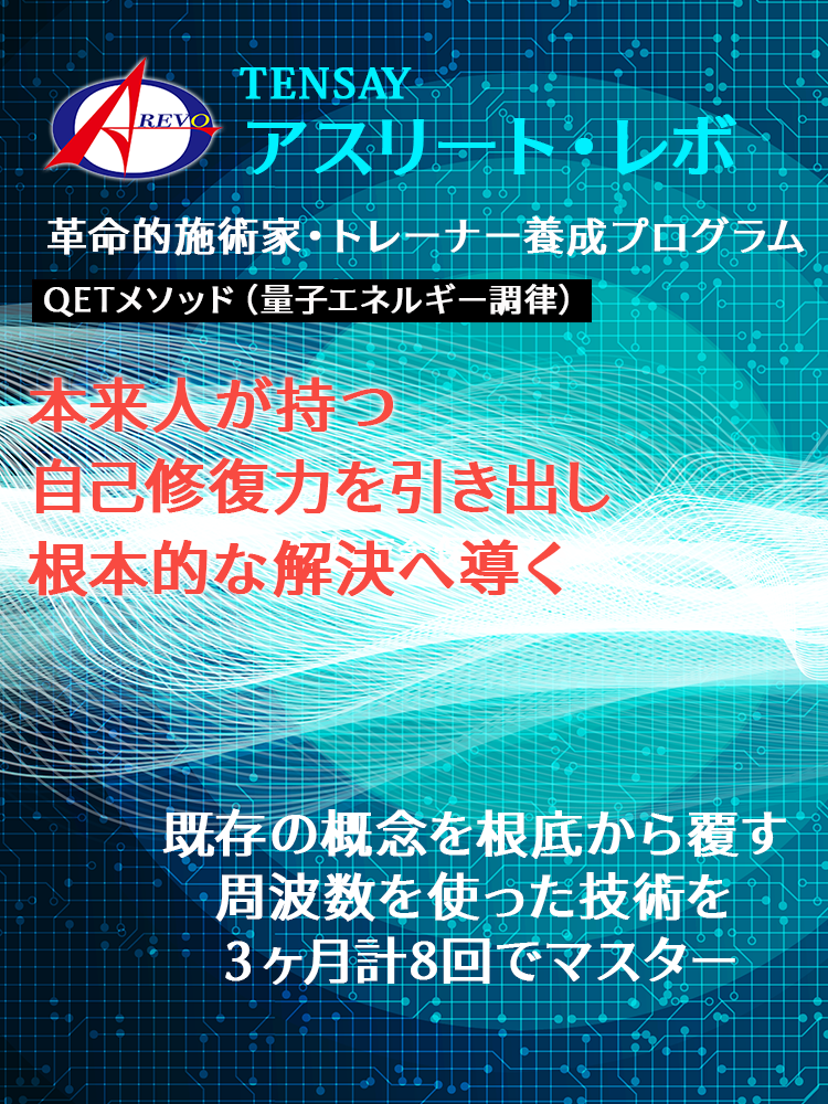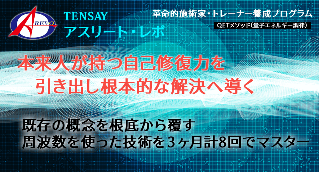 アスリート・レボの技術は本来の周波数からズレてしまったものを元の周波数に戻すことで自己調整を促し、さらに体の中に外部からの影響を受けづらい素養を作り出すことで、その人本来の健康的な姿を取り戻すことを可能にした技術です。